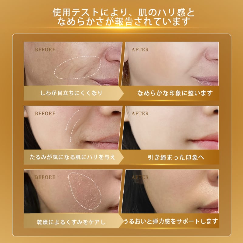 軽やかでさらりとしたテクスチャーで、すぐに肌になじみます。しっとり感を残しながらもべたつかず、日常的な使用に最適です。植物由来美容エキス・シワの改善効果に期待され医薬品にも活用されている“蛇の毒”「シンエイク」(ジ酢酸ジペプチドジアミノブチロイルベンジルアミド)を凝縮配合しました。安心安全の日本国内生産。